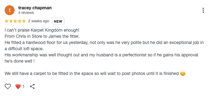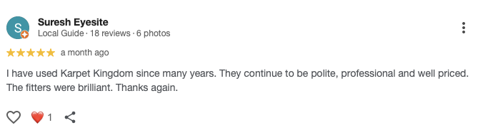 At Karpet Kingdom, we take pride in providing exceptional service and high-quality products to our valued customers. Your satisfaction is our top priority, and we believe in building trust through excellent customer experiences. But don’t just take our word for it – read what our happy customers have to say about their experiences with us!
